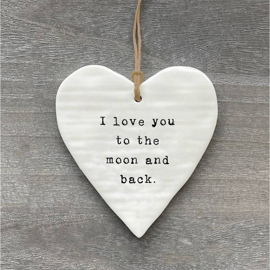 To The Moon And Back Hanging Ceramic Heart 10cm